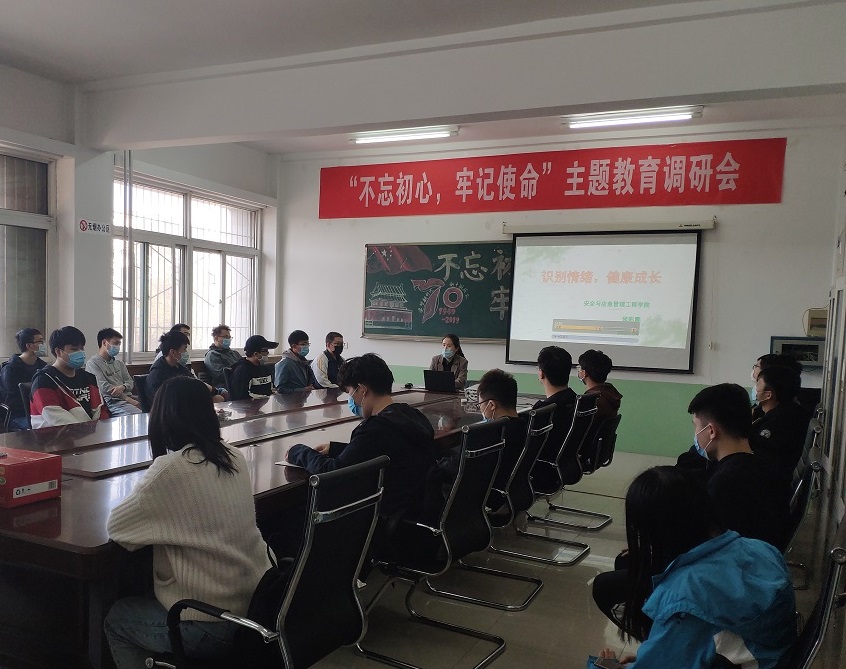 4月24日下午,安全与应急管理工程公司党委副书记侯彩霞结合“返校第一课”的要求和指导思想在虎峪校区致明楼206对毕业年级心理委员及宿舍联络员开展了一次题为“识别情绪,健康成长”的心理健康教育专题培训。此次培训也是学院员工成长咨询中心“阳光护航”项目的活动内容之一。