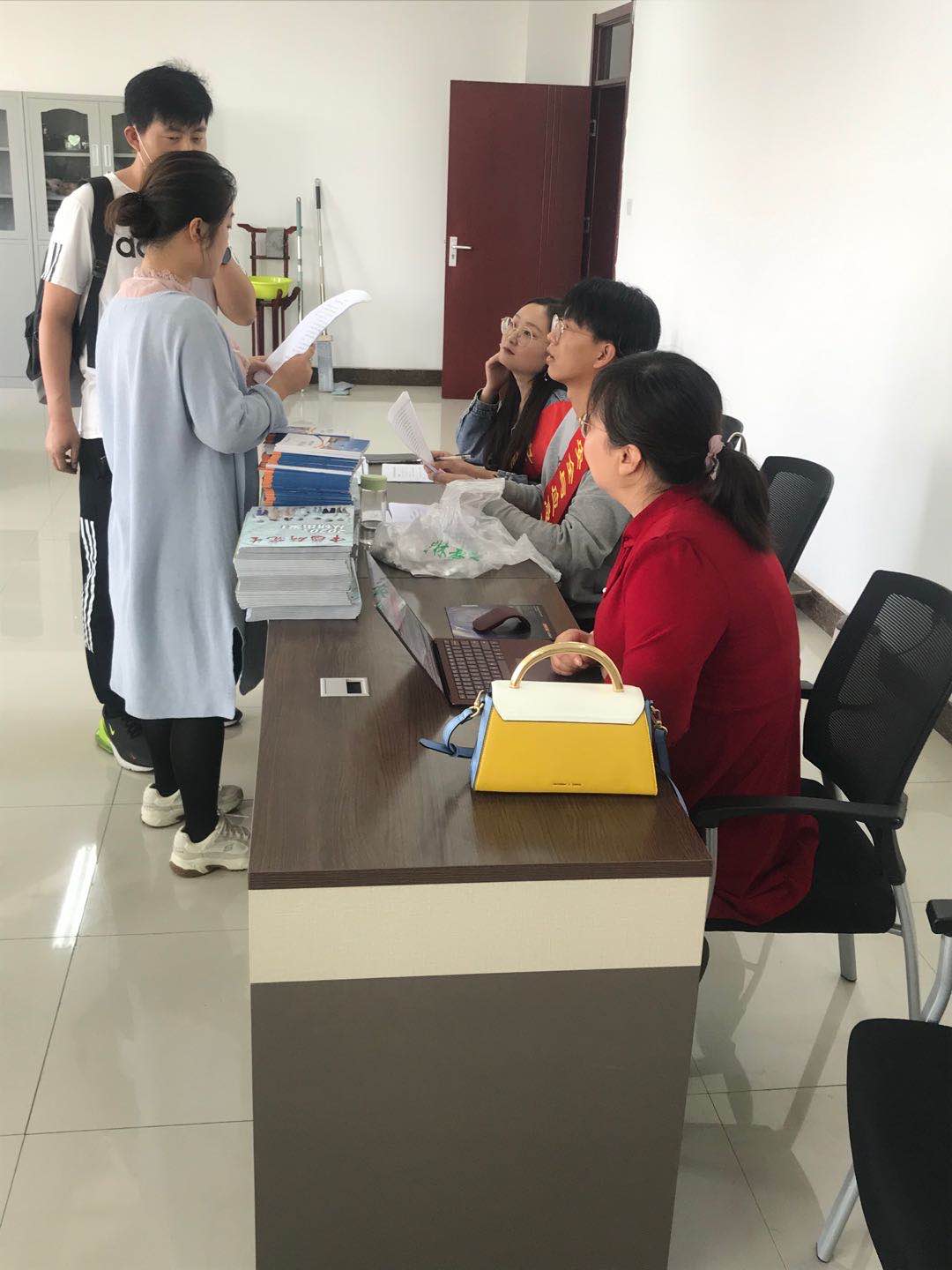 公司在科技楼九层设立新生报到处。核实新生录取通知书、毕业证和身份证等身份信息,收取个人档案,为新生发放开学的相关材料,以及办理注册手续等。工作人员默默的忙碌着,分工明确地完成各项报到流程,细致周到,高效迅速,为新生介绍自己的院系,充分展示了学院的魅力。在学校各入口处都有迎新志愿者的身影,志愿者的亲切引导,热情服务,让新生有一种家的温暖,也正是这群可爱的志愿者,使新生的报到更加安全有序,使各项工作顺利进行。