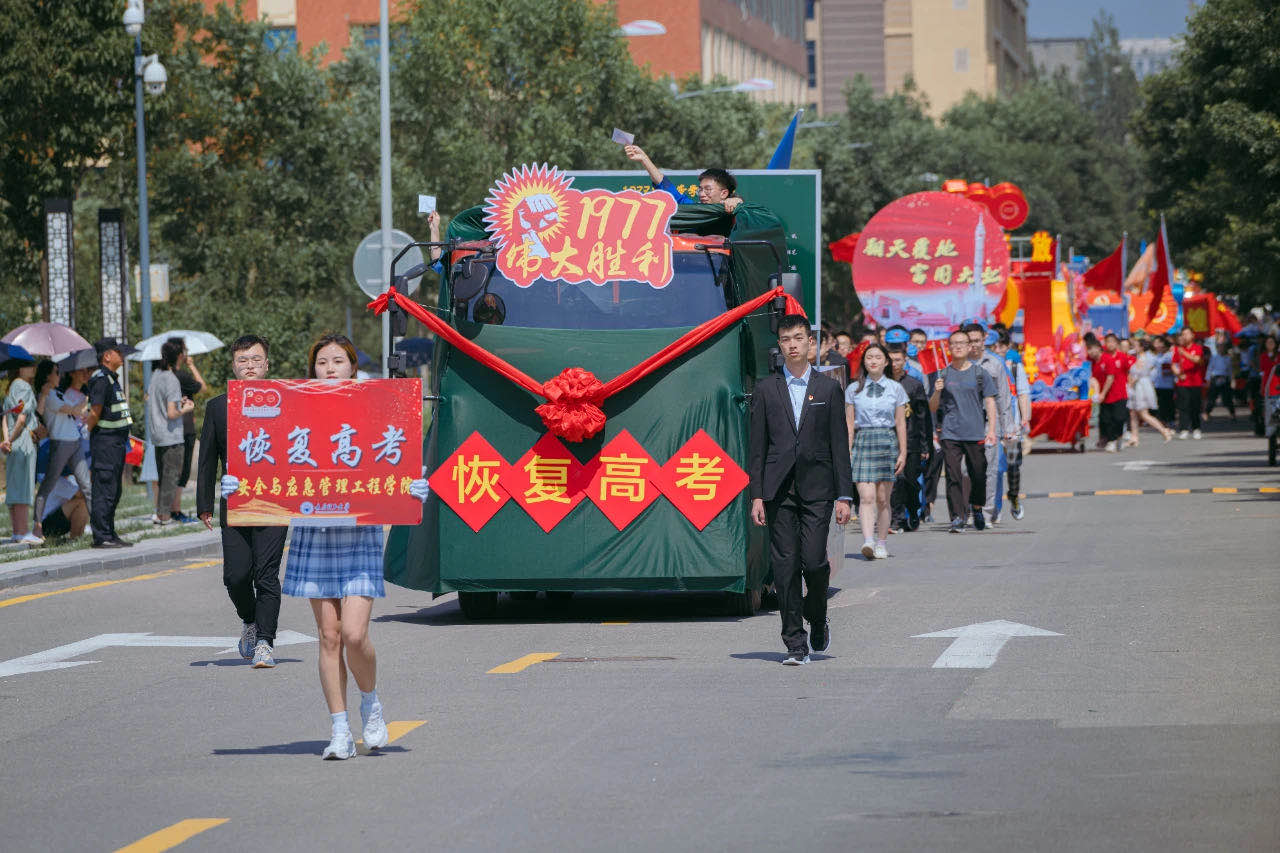 在第二篇章“翻天覆地:富国大业”中,yl7703永利集团官网以“1977伟大胜利”为主线,以“恢复高考,知识改变命运”为主题,踊跃筹建红色花车,积极参与校园主题巡游表演。