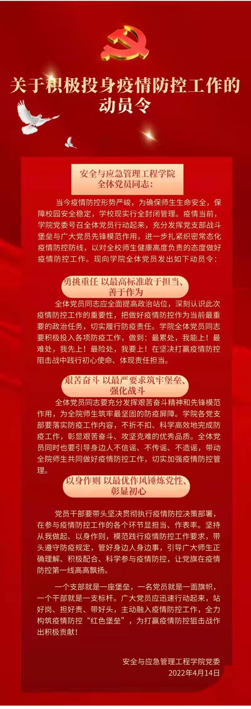 关于积极投身疫情防控工作的动员令