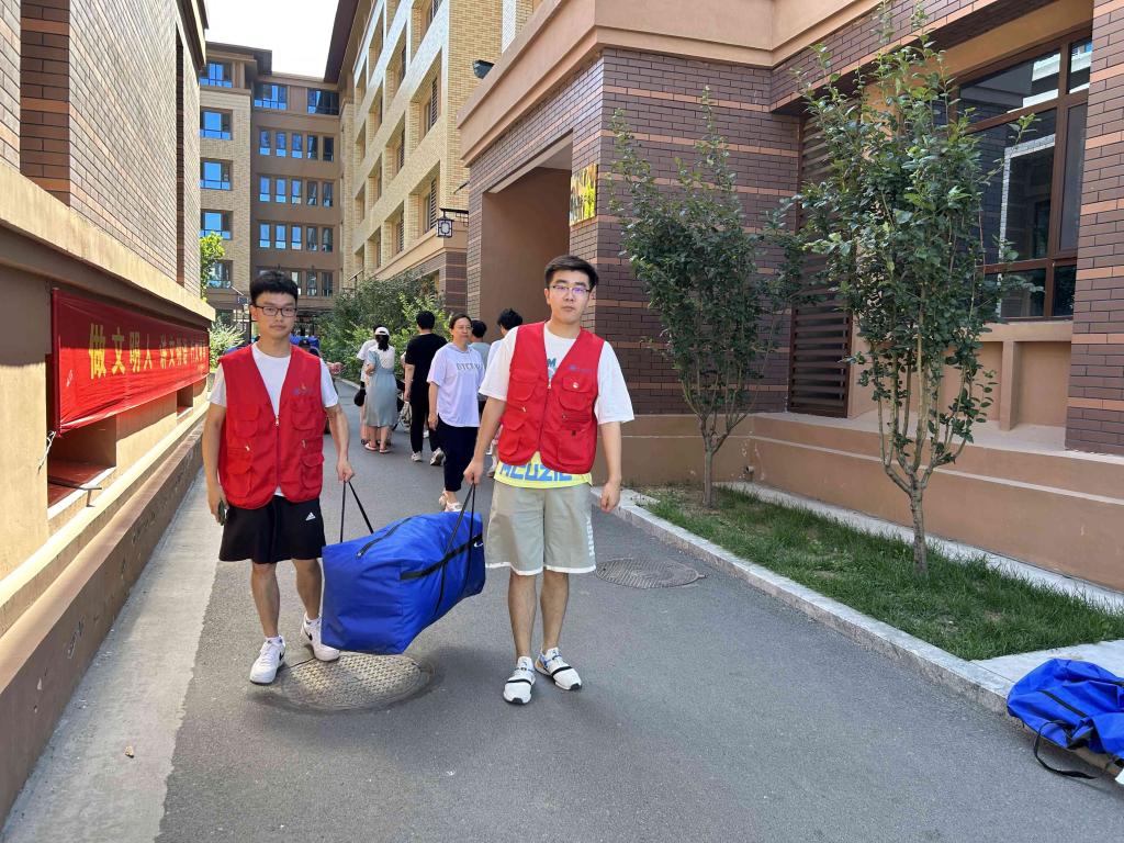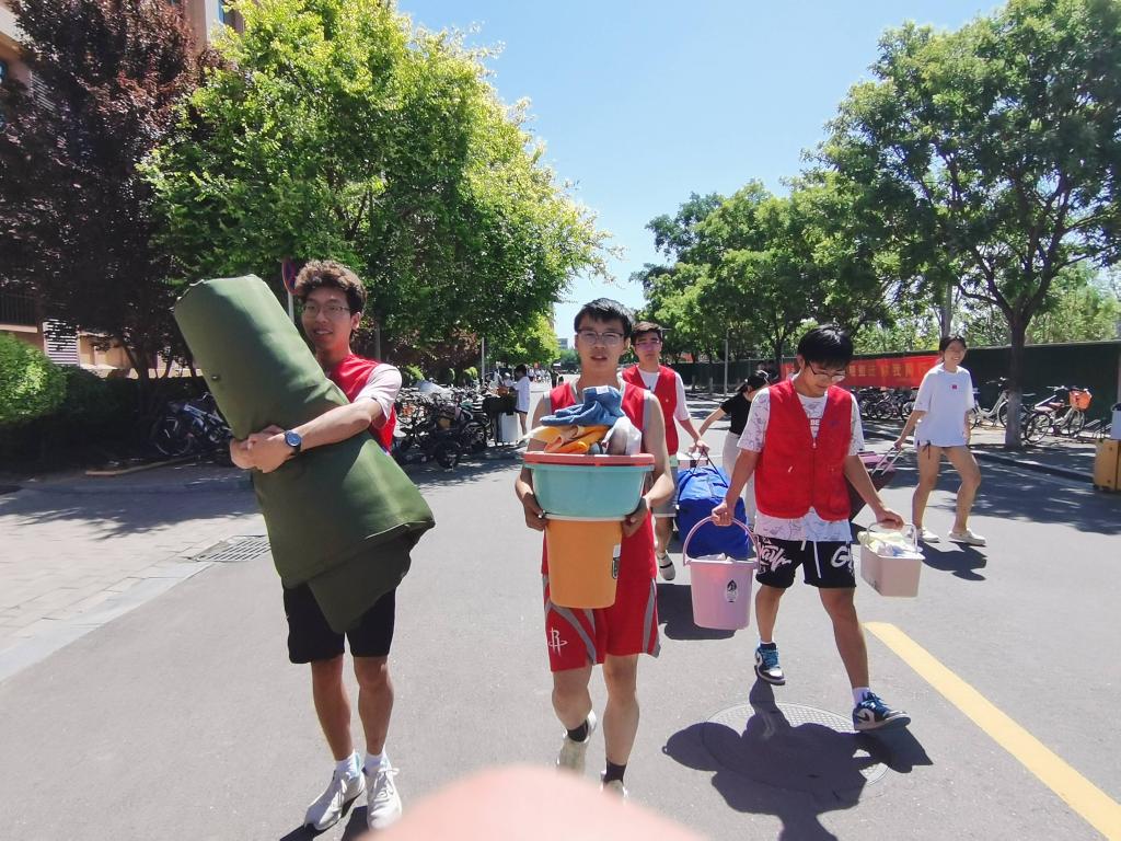 员工党员、志愿者在党支部书记康莉老师和党支部副书记罗渊俊老师的带领下穿梭在各个公寓楼中,维持搬迁秩序,帮助搬迁行李,竭尽全力帮助同学们解决各类问题,打通“宿舍搬迁的最后一段路”。他们头顶烈日、肩扛行李,忙碌的身影形成一道靓丽的风景线。