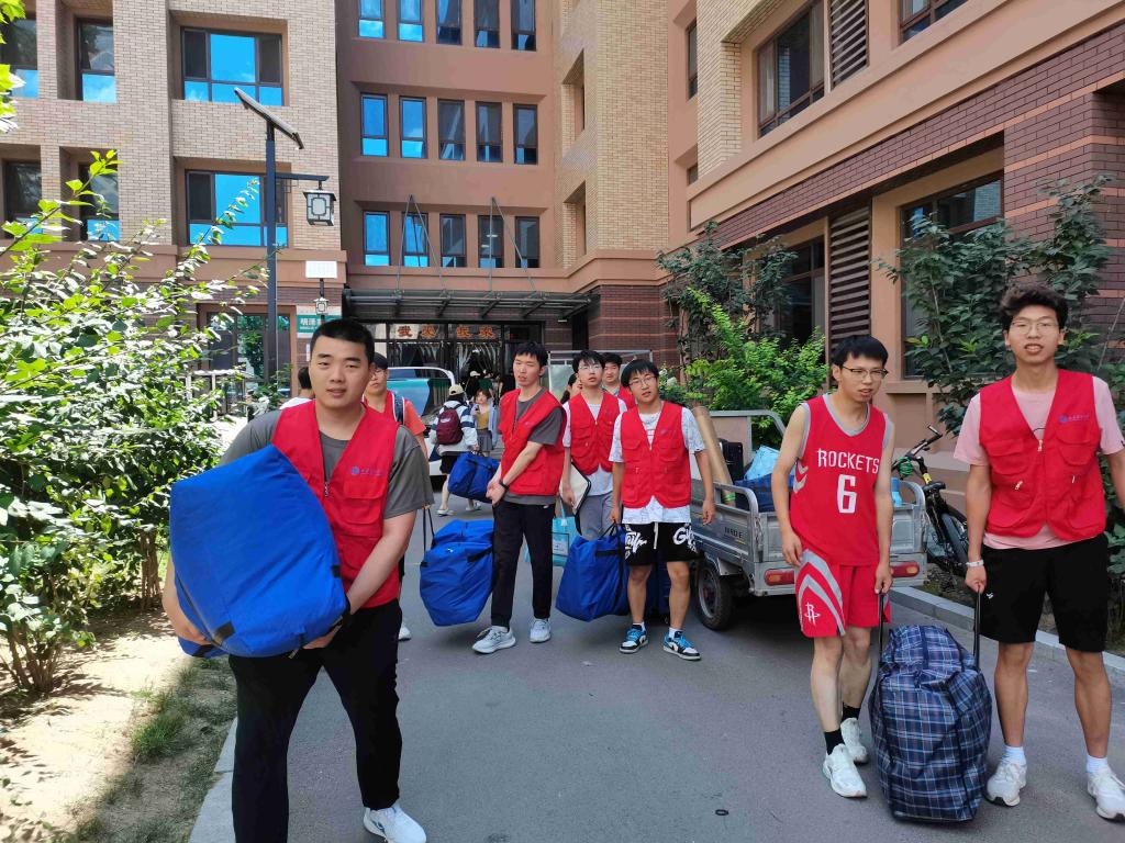 搬运过程中,党员同志们展现出了高度的团队合作和协调能力,他们分工明确、各司其职、配合默契,井然有序地完成每一项任务,为2022级同学们送去了力所能及的温暖和关怀。