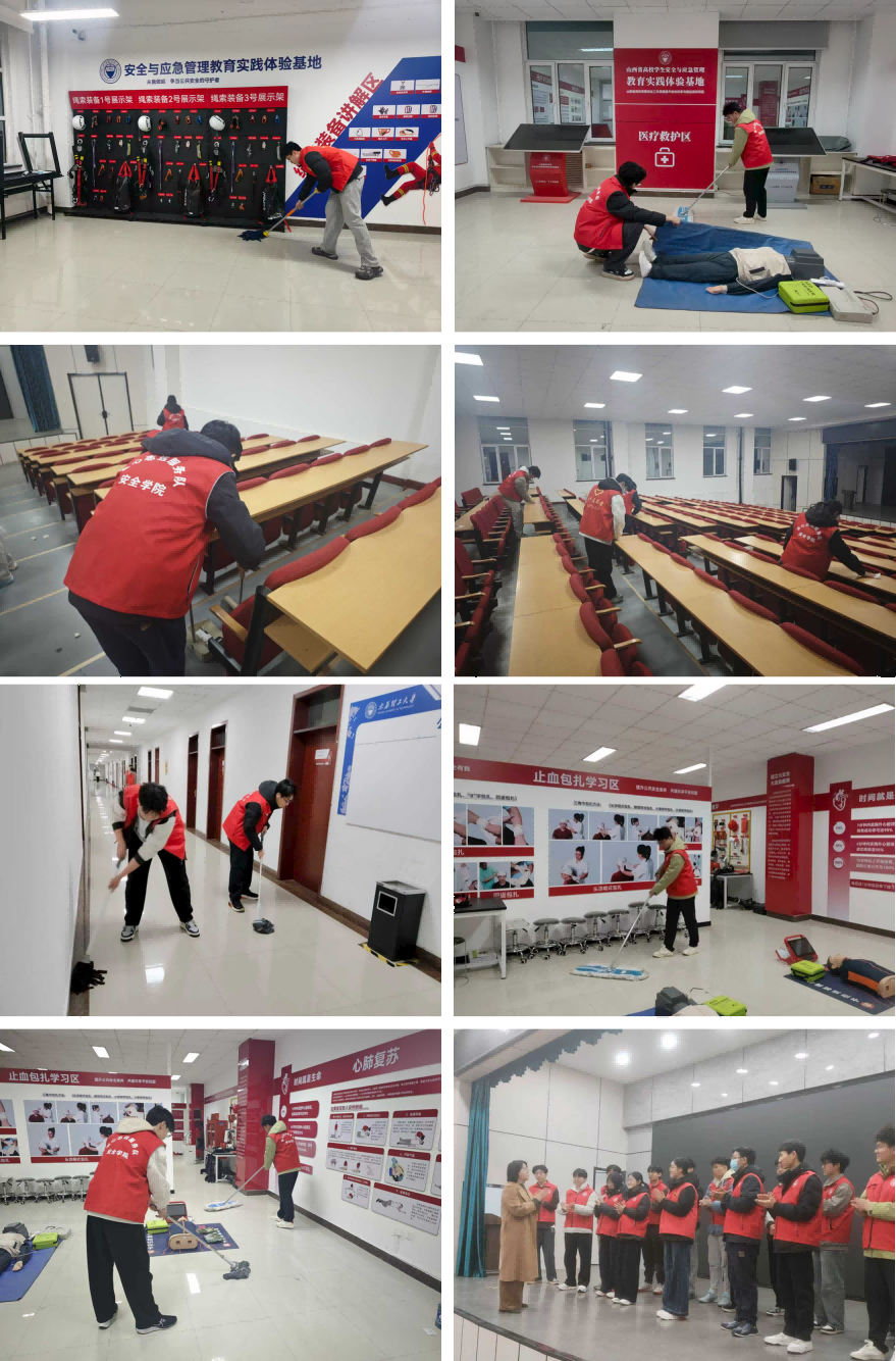 活动现场,志愿者们手持抹布、拖布等清洁工具,以高度的热情投入志愿服务。大家分工明确、协同配合,对学院一层报告厅、二层教育实践体验基地、三层办公区展开全面清扫,同时对周边公共区域的乱停乱放单车进行规整。清扫过程中,志愿者们干劲十足、认真细致,不放过任何卫生死角,不遗留一片纸屑,用实际行动践行雷锋精神,展现出新时代青年员工的责任与担当。