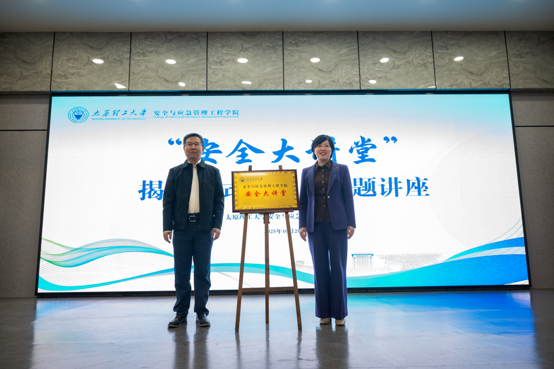 在全场师生的见证下,金智新与李平共同为“安全大讲堂”揭牌,标志着该学术平台正式扬帆起航。